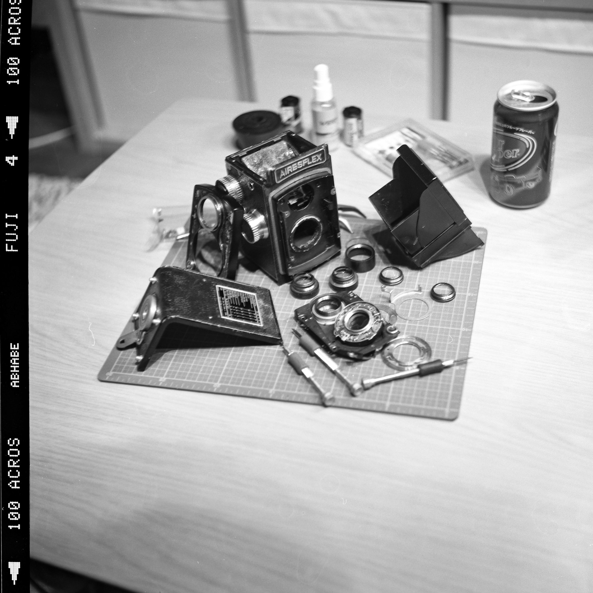 I've recently re-built a TLR from the "remains" of an old LaurelFlex and AiresFlex (which I dub the "FrankenFlex"), and these are some of the test shots / street photography from that camera. The last few shots are of the restoration process.